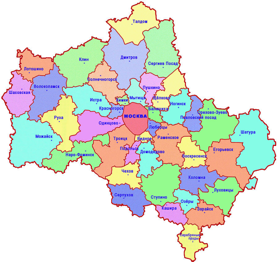 Северо-Восточный округ, Восточный округ, Юго-Восточный округ, Южный округ, Юго-Западный округ, Западный округ, Северо-Западный округ, Зеленоградский округ, Новомосковский округ, Троицкий округ